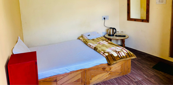Enjoy a perfect blend of comfort and scenery in our Deluxe Room, featuring warm décor and direct views of the Himalayan hills.