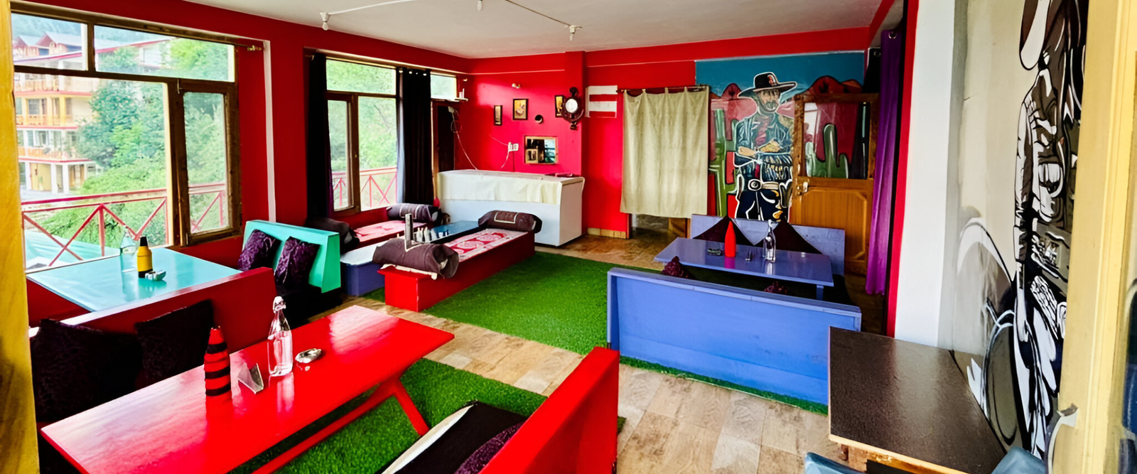 Every room opens to a stunning backdrop of Manali’s rolling hills, letting you wake up to misty mornings and mountain air.